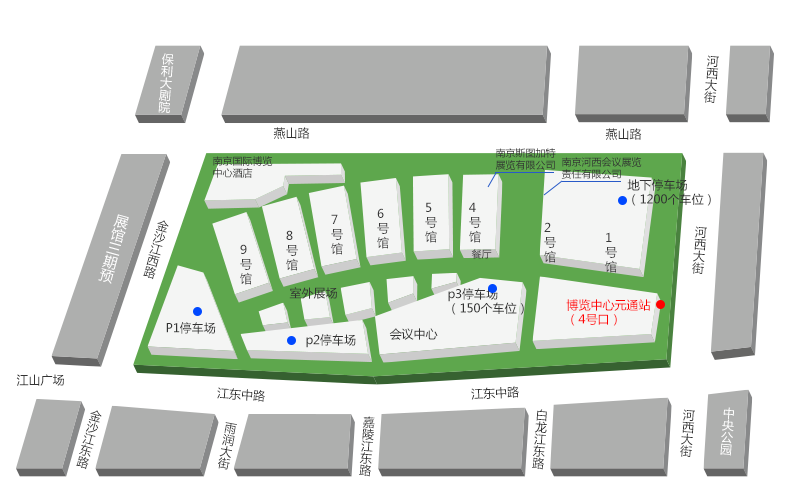 坐落于南京河西新城中心位置,南京国际博览中心是一座集展会、会议、酒店、配套服务于一体的现代化会展场馆。